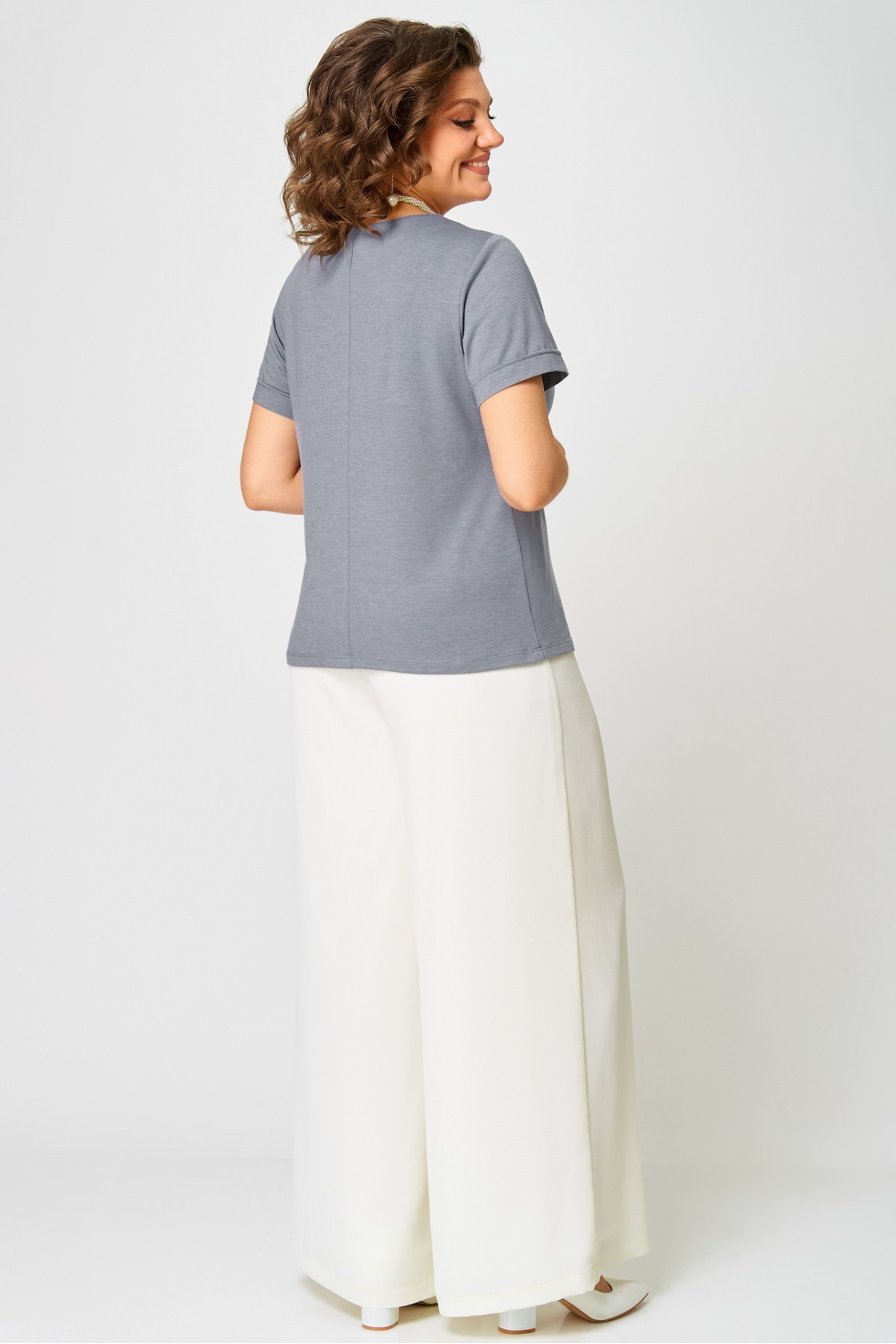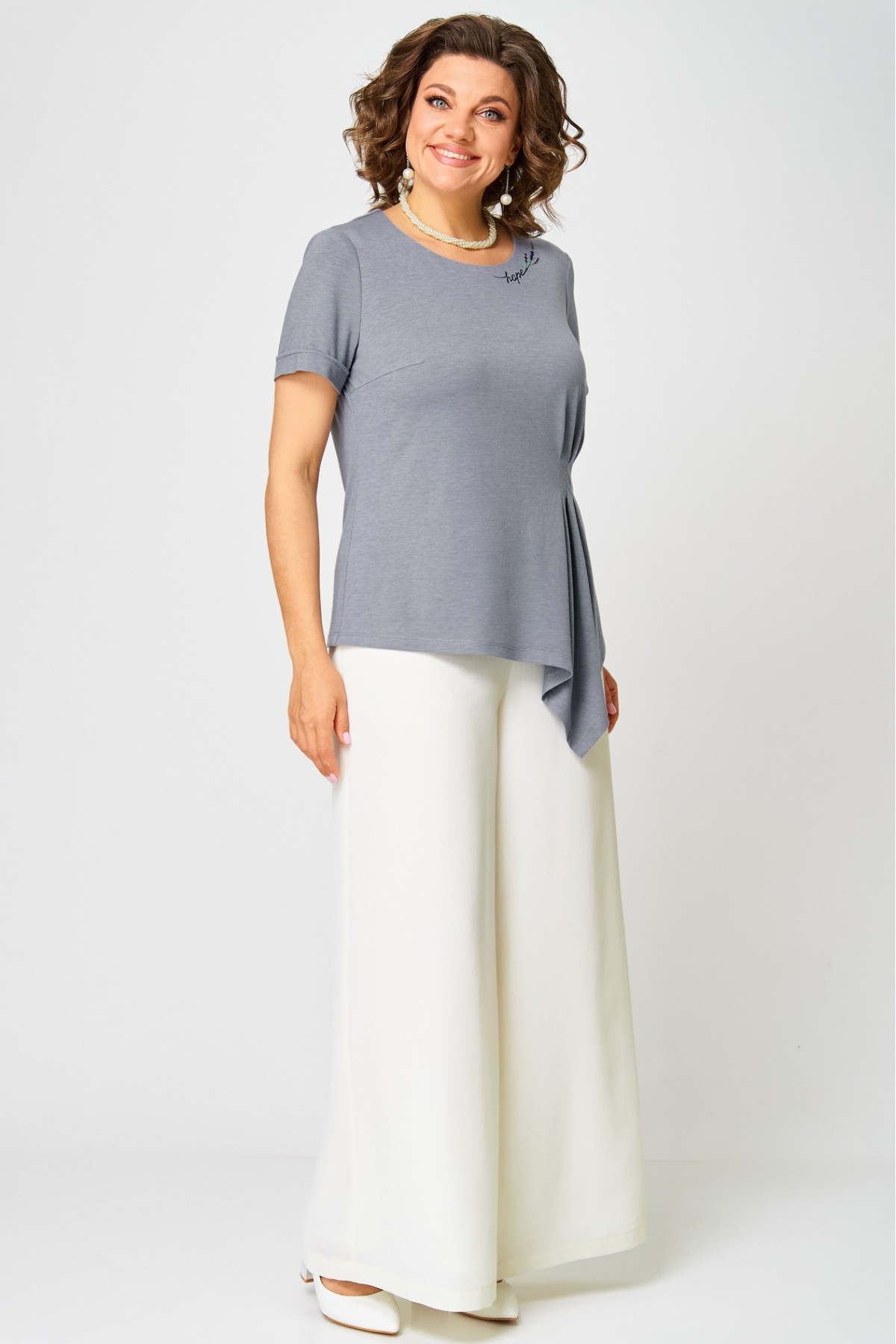 Базовый брючный комплект состоит из оригинальной блузки и широких брюк-палаццо. Блузка из тонкого однотонного трикотажного полотна с элегантными защипами по талии подчеркнет Вашу женственность и романтичность. Удлиненную блузку дополняют комфортные брюки свободного силуэта из струящегося шифона, которые помогут скрыть недостатки и вытянуть фигуру.
