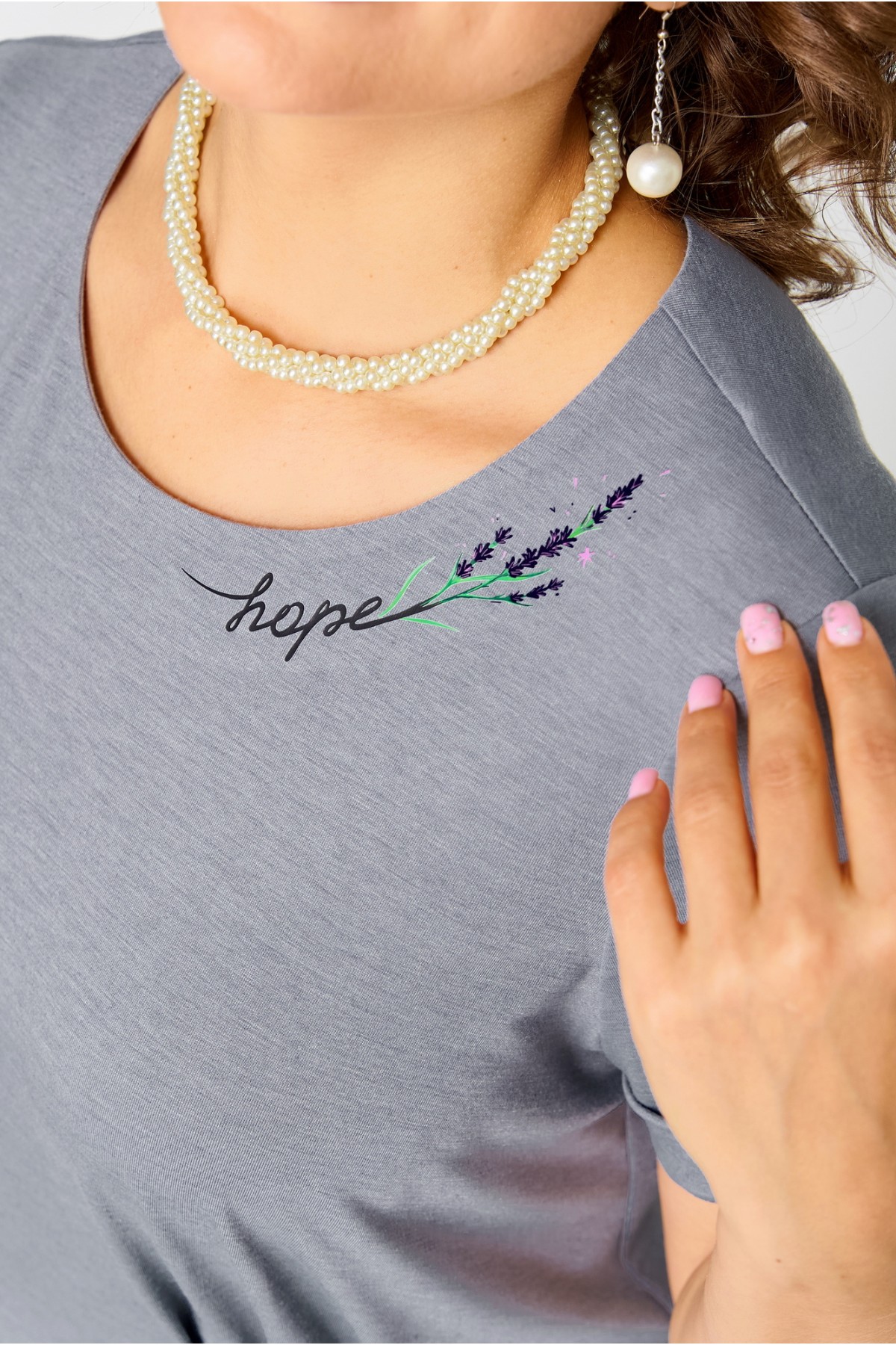 Блузка полуприлегающего силуэта с ассиметричным низом. Горловина округлой формы декорирована принтом. Перед с нагрудной вытачкой и декоративными вертикальными защипами по талии. Спинка со средним швом. Рукав втачной короткий с манжетой.