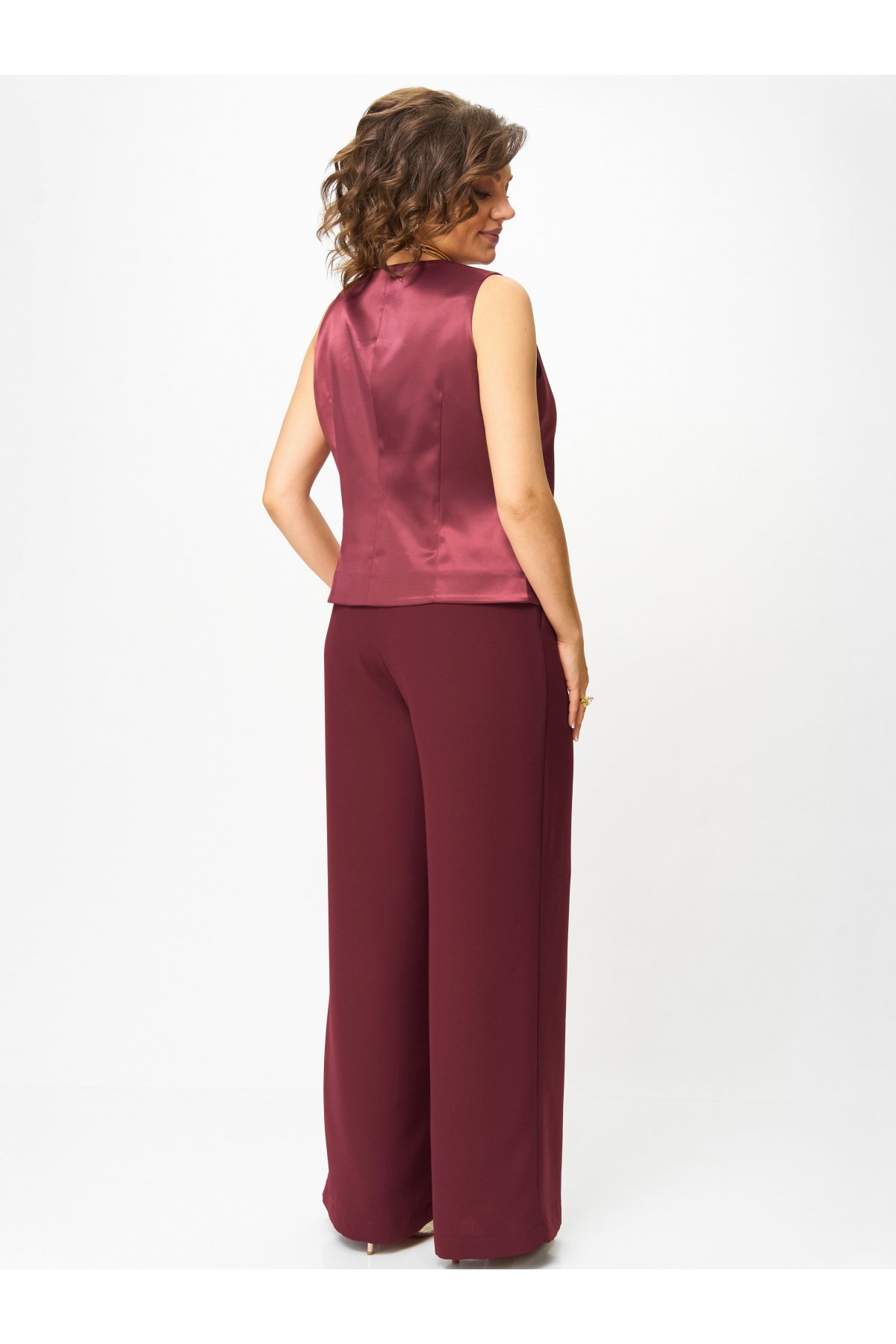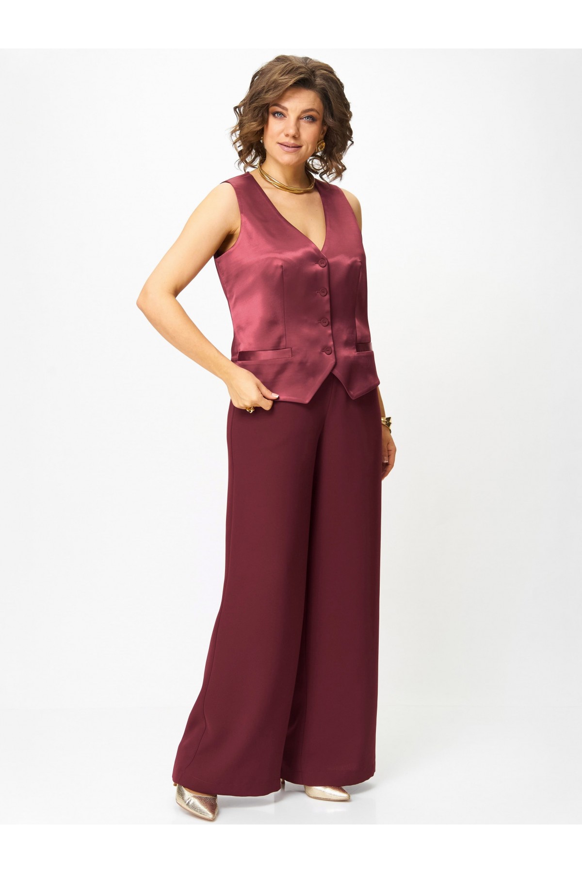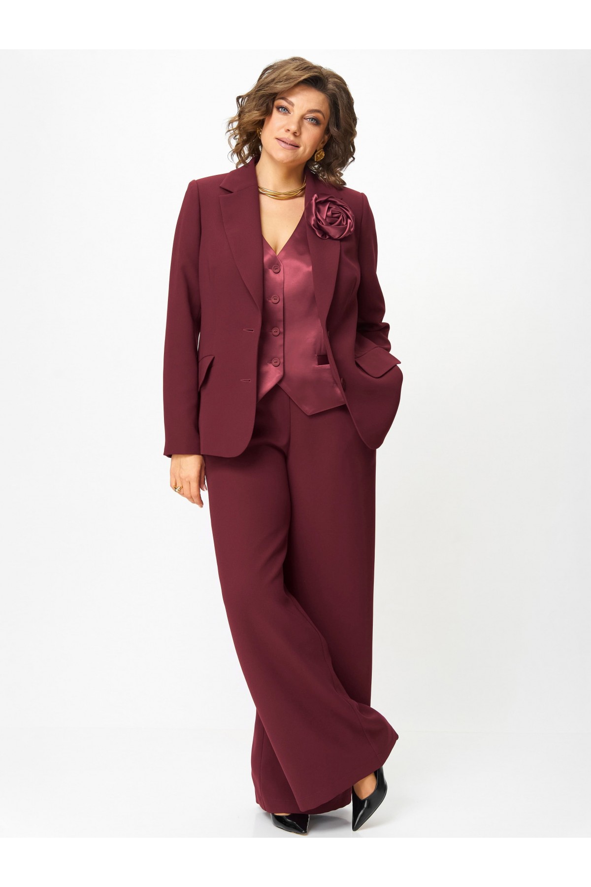 Брючный костюм тройка с жилетом – это элегантное решение для любой женщины, стремящейся выглядеть стильно и уверенно в любой ситуации. Классический стиль и актуальный цвет костюма подчеркнет вашу женственность и хороший вкус. Классический костюм тройка - необходимый элемент базового гардеробы современной бизнес-леди, идеальный выбор для офиса и деловых встреч. Приталенный жакет добавляет костюму изящества и помогает в создании различных образов, а съемная брошь в виде цветка делает ваш образ незабываемым. Жилет добавляет образу элегантности и подчеркивает утонченность. Широкие брюки палаццо на резинке из трикотажного полотна не сковывают движения, удобно сидят по талии и обеспечивают комфорт в течение всего рабочего дня. Комплект отлично подойдет и для важных встреч, и для торжественных мероприятий. Костюм тройка с широкими брюками – это идеальный выбор для тех, кто ценит качество, стиль и комфорт.